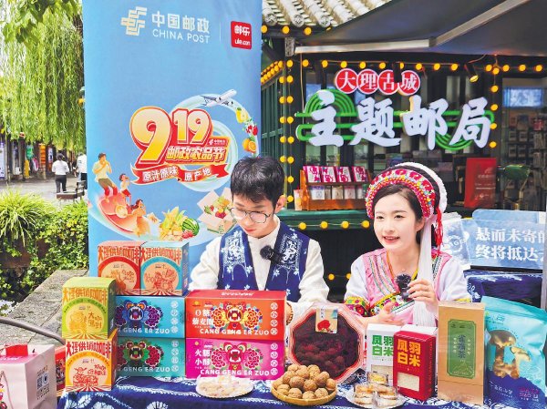 “919”邮政农品节来临之际,云南省大理白族自治州城区邮政分公司在大理古城主题邮局开设直播间。大理邮政主播化身“金花”“阿鹏”,为家乡美味倾情代言,带领大家“云”游美丽大理,将农户的“钱袋子”和消费者的“菜篮子”一键接通,通过“电商直播+寄递保障+金融支持”的一体化惠农服务,为乡村振兴增添新活力。