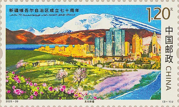 《新疆维吾尔自治区成立七十周年》纪念邮票将于9月21日发行。该套邮票1套3枚,邮票图案名称分别为:美丽新疆、团结和睦、开放高地。